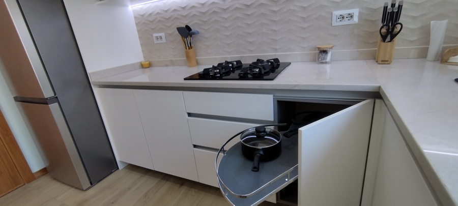 Recentemente, concluímos este projeto residencial no Centro Histórico de São Vicente, destacando-se pela sua elegância e design contemporâneo. Um dos aspectos mais notáveis desta residência é a sua cozinha, meticulosamente equipada e projetada para oferecer tanto funcionalidade quanto estilo. Além disso, o projeto abrange armários de TV, portas de madeira em todos os quartos, roupeiros espaçosos e bem planejados para cada quarto, além de armários de banheiro cuidadosamente concebidos. Esta empreitada personifica o nosso compromisso com soluções de alta qualidade, combinando estética e funcionalidade para criar um ambiente residencial verdadeiramente excepcional.